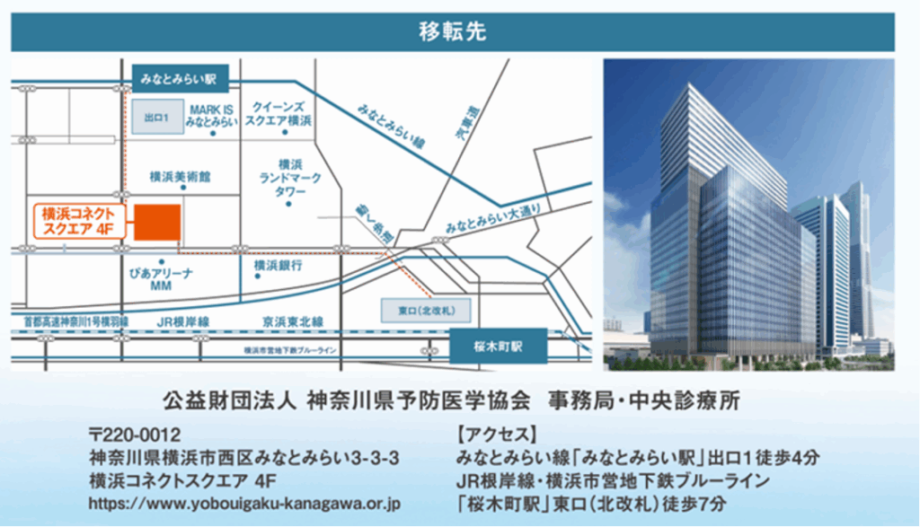(財)神奈川県予防医学協会が現在の場所からみなとみらいへ移転します。
